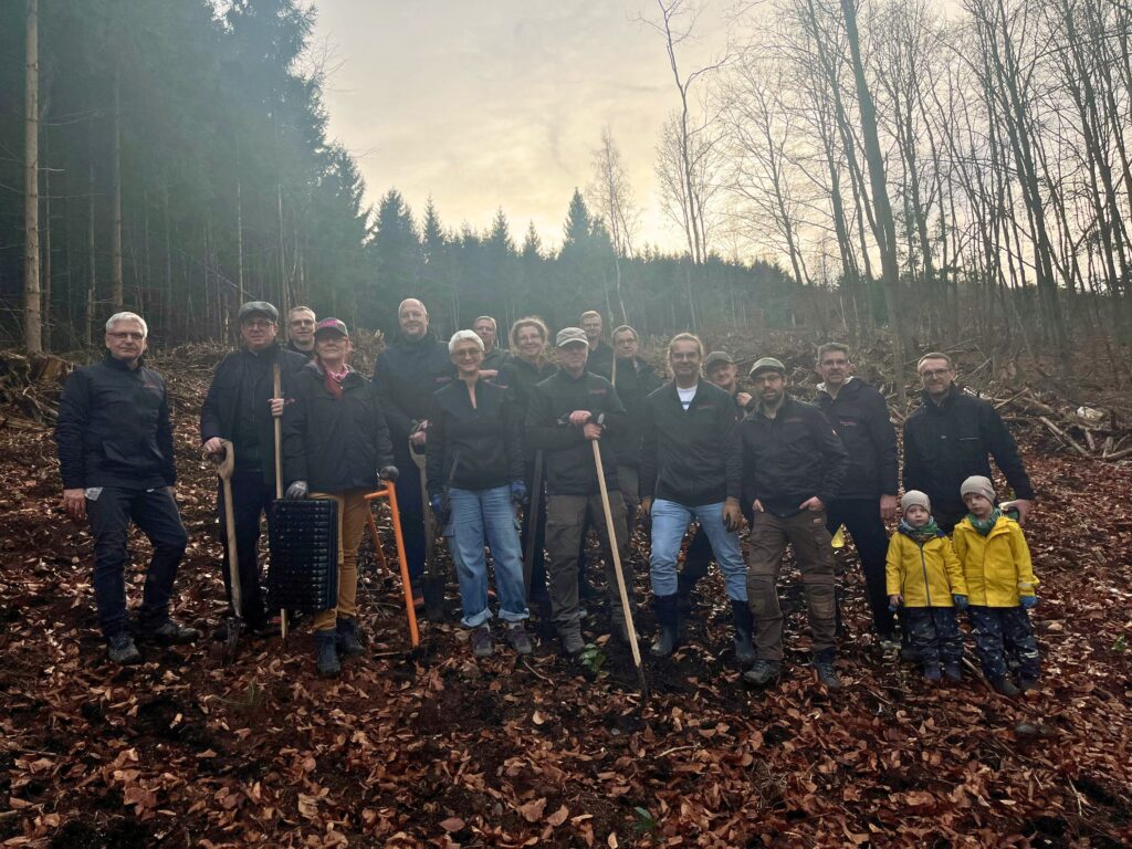 Unter fach­li­cher Anlei­tung wur­den dabei neue Bäu­me gesetzt, um geschä­dig­te Flä­chen zu stär­ken und den Wald lang­fris­tig wider­stands­fä­hi­ger gegen kli­ma­ti­sche Ver­än­de­run­gen zu machen.