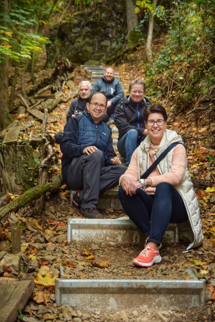 Bereits 2024 wur­den die ers­ten 250 Meter mit neu­en Trep­pen­stu­fen und Hang­ele­men­ten aus­ge­rüs­tet. In die­sem Jahr kamen wei­te­re zehn Stu­fen und 25 Siche­rungs­ele­men­te hin­zu. Zum Ein­satz kam ein paten­tier­tes Stu­fen­sys­tem aus Stahl, das sich auch in alpi­nen Regio­nen bewährt hat. Die Arbei­ten führ­te die Fir­ma Tritt­si­cher aus Tre­se­burg aus.