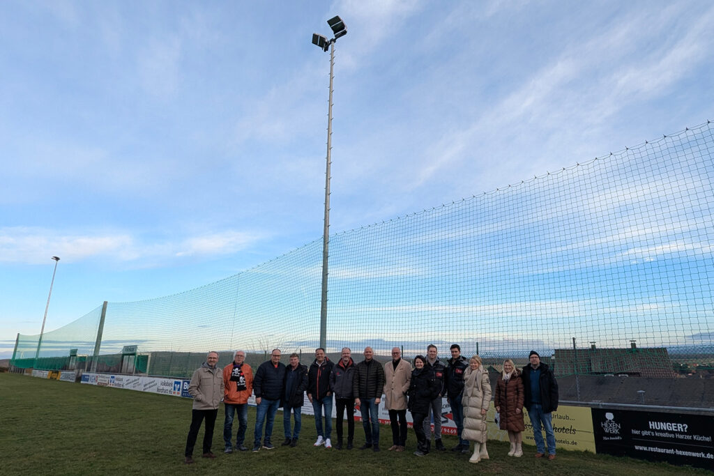 Die Stadt Goslar hat die Erneuerung der Flutlichtanlage auf dem Sportplatz in Immenrode erfolgreich abgeschlossen. Oberbürgermeisterin Urte Schwerdtner eröffnete die neue Anlage im Beisein von Ratsmitgliedern, Ortsvorsteherin, Mitarbeitenden der Stadtverwaltung sowie beteiligten Firmen und Vereinsvertretern.