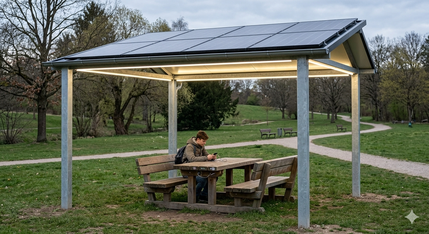 Die Konstruktionen greifen Anforderungen aus dem kommunalen Klimaschutzkonzept auf und verbinden Nachhaltigkeit mit praktischen Vorteilen. Durch den autarken Betrieb entstehen keine laufenden Energiekosten für die Stadt.