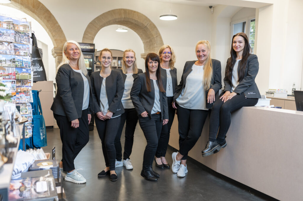 Die Tourist-Information im Rathaus ist regulär geöffnet und bietet Beratung sowie ausgewählte Artikel zu Sonderpreisen an.