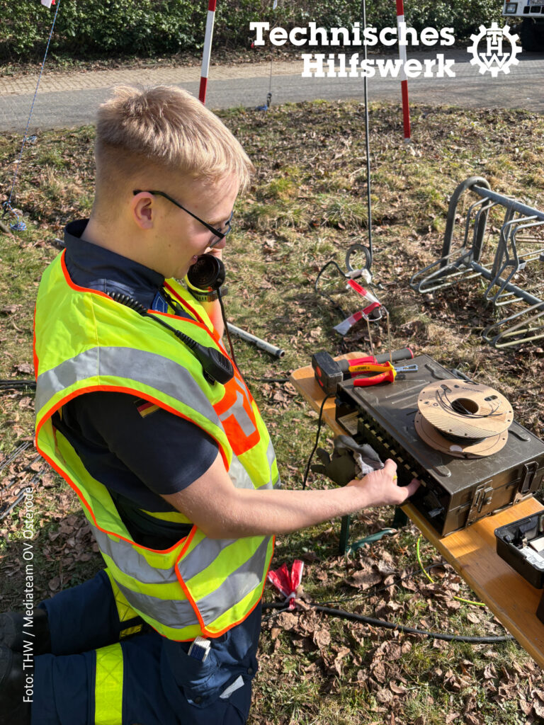 Die Helferinnen und Helfer verlegten dabei am 7. März 2026 im Stadtgebiet von Osterode mehrere Fernmeldekabel und bauten damit eine funktionierende Kommunikationsverbindung auf. Solche Systeme kommen insbesondere dann zum Einsatz, wenn herkömmliche Infrastruktur ausfällt oder nicht vorhanden ist.